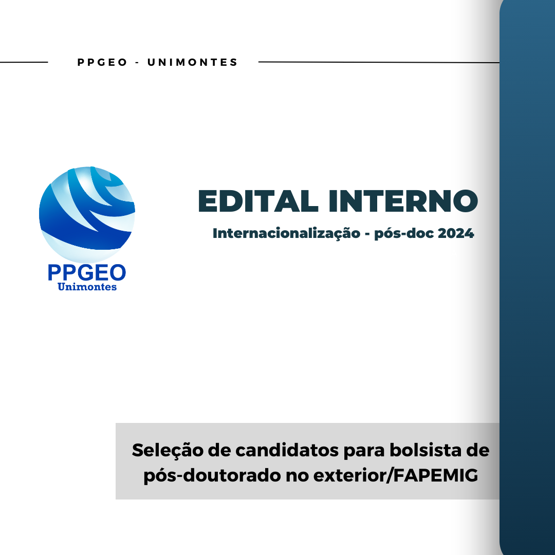 A Coordenação do Programa de Pós-Graduação em Geografia (PPGEO) da Universidade Estadual de Montes Claros anuncia a abertura do processo seletivo interno para candidatos(as) interessados em concorrer à bolsa de Pós-Doutorado no Exterior, em conformidade com o Edital n. 01/2024.
